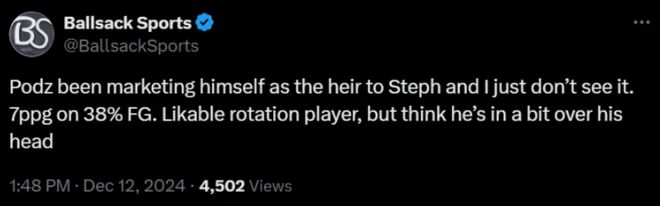 在12月份就有美媒痛批他不配称自己是库里接班人,他根本没资格营销自己是库里接班人,他有点自不量力。
